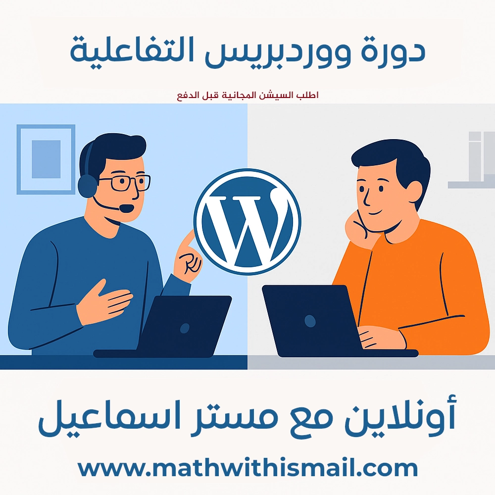 انضم الآن إلى دورة ووردبريس التفاعلية مع مستر إسماعيل – مطور مواقع محترف بخبرة تتجاوز 20 عامًا.