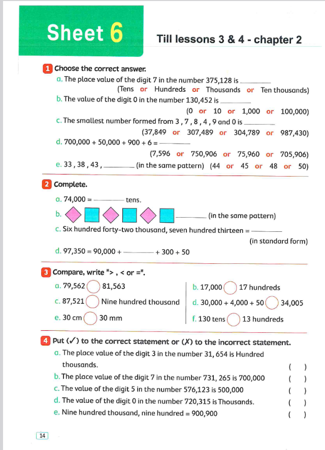حل Worksheet 6 من كتاب El Moasser Math Grade 3 ترم أول 2025-2026 يعتبر تدريب عملي مهم جدًا على موضوعات مثل Place Value – Standard Form – Compare – Number Patterns.